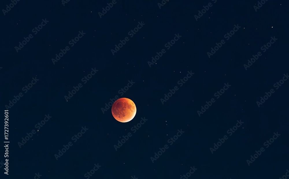 This captivating image showcases a blood moon illuminating the night sky, during the total lunar eclipse, surrounded by twinkling stars, evoking a sense of wonder and cosmic beauty for viewers.