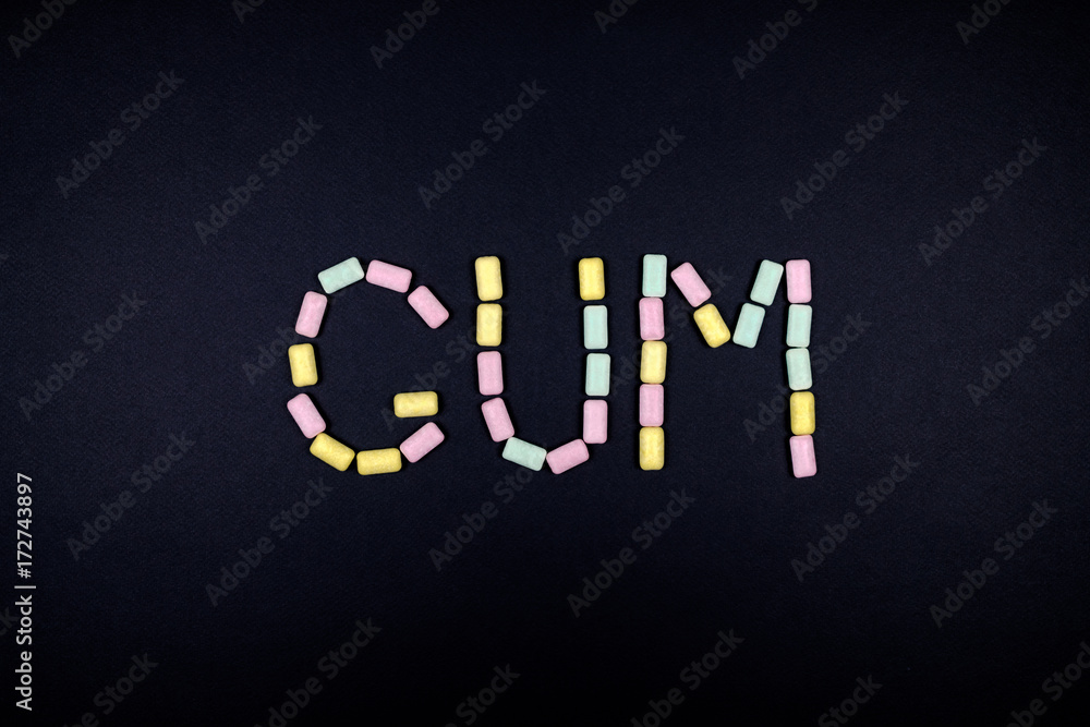 Word GUM written with chewing gum