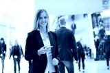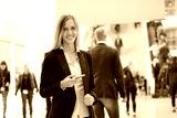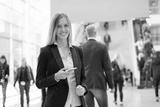young beautiful businesswoman at a trade fair
