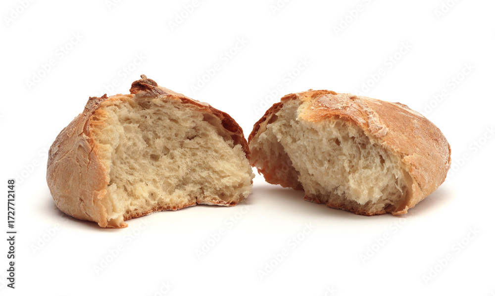 Fresh home handmade broken Ciabatta Baked Bread on white background.