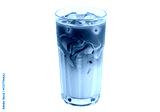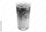 Iced matcha latte in glass isolated, refreshing green tea drink with milk and ice cubes
