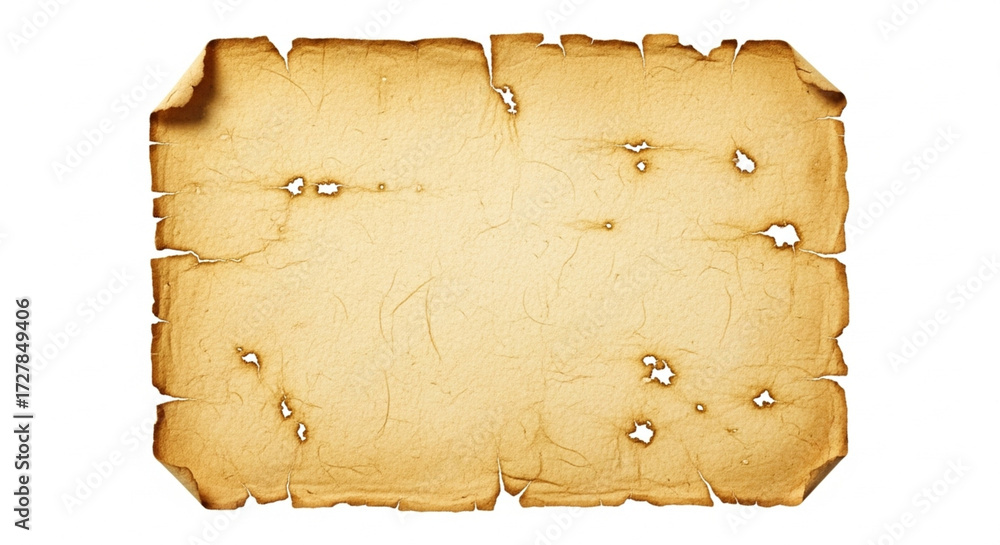 Aged parchment map texture with burned edges and stains isolated for design