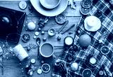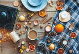 Flat lay of winter or autumn home decor