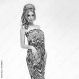 Fashion. Young woman in Summer Outfit, Glamor Pinup hairstyle, Trendy fashion Makeup. Playful Pretty girl in fashion pose. Beautiful Sexy Redhead Model, Stylish Summer Colorful look