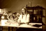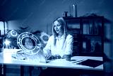 Professional Woman Analyzing Data On Laptop With Futuristic Holographic Visualization In Modern Office Setting