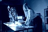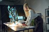 Business Professional Analyzing Futuristic Holographic Interface In Modern Tech Office For Security Driven Innovation