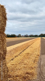 Stack of hay during harvest season at the end of summer and in the beginning of autumn outdoor at daytime in Noordwijkerhout in The Netherlands.