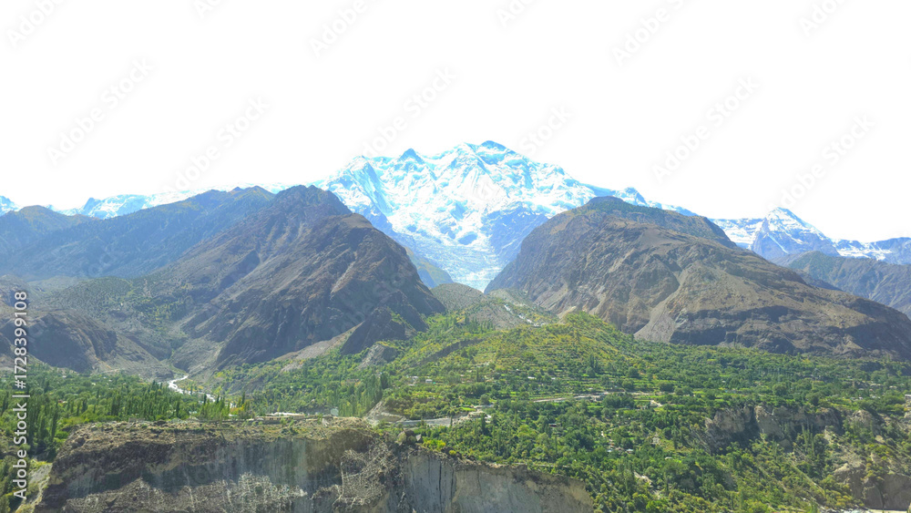 Rakaposhi Mountain in Gilgit Isolated on a White Background with Copy Text Space. Majestic Landscape Element for Travel Posters, Cultural Themes, and Nature-Inspired Designs. PNG File