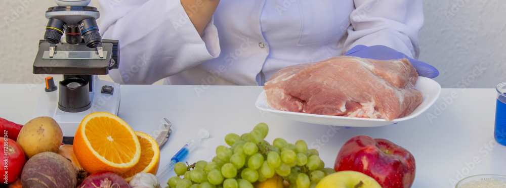 Meat and Food Quality Control Laboratory Testing with a Magnifying Glass