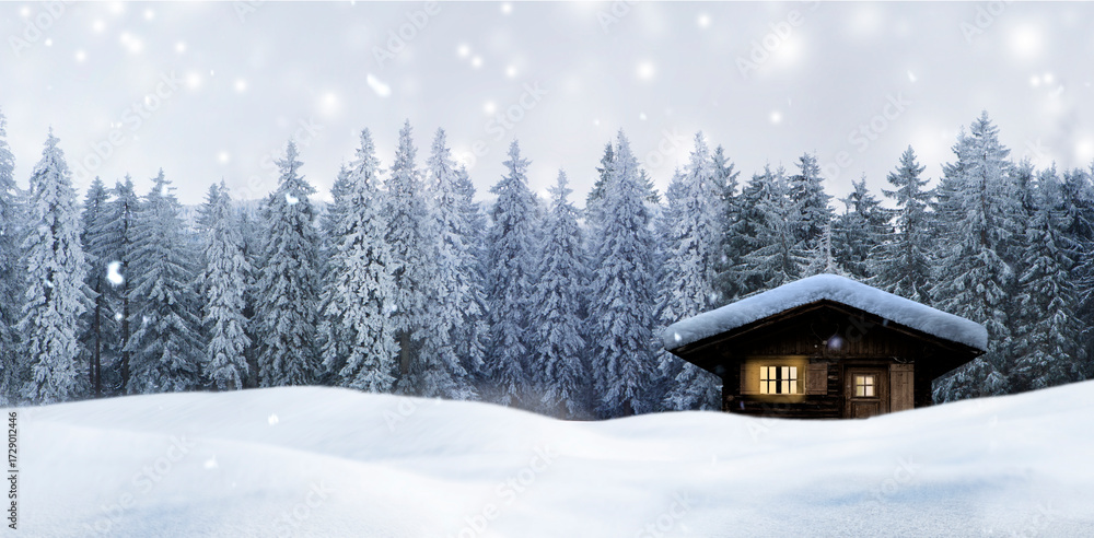 Winterliche Weihnachtsstimmung mit Schnee und Weihnachtsbaum