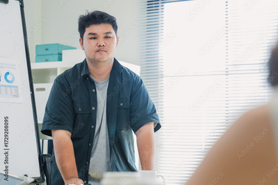 Business leader facilitates strategic hackathon utilizing AI-powered analytics and cross-functional collaboration to drive digital transformation through agile methodologies and data-driven innovation