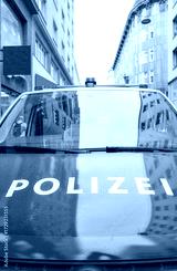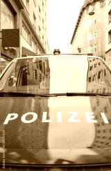 The hood of a police car parked on the street of Vienna, selective focus, Austria.