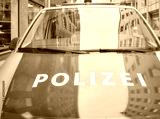 The hood of a police car parked on the street of Vienna, selective focus, Austria.