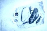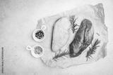 Preparation for cooking raw duck breast with ingredients on white background, top view. Space for text. High quality photo