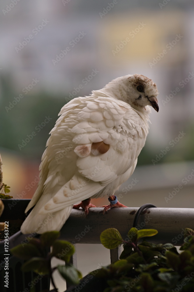 Biały gołąb na balkonie
