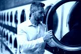 Tight schedule and time management. Effective planning in schedule. Well-organized man in laundry. Work-life balance. Overloaded schedule for busy business man. Tight schedule. Busy office worker.