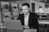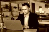 Focused businessman in suit working on his laptop