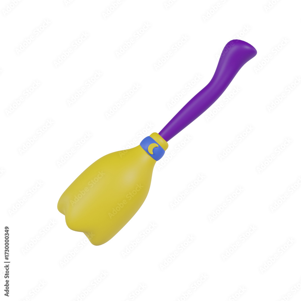 Cartoon Broomstick with Yellow Brush and Purple Handle on a Transparent Background