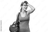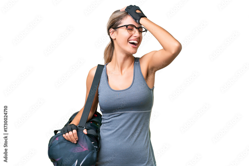 Pretty Young Uruguayan sport woman with sport bag over isolated background has realized something and intending the solution