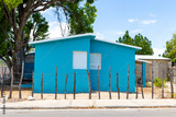 Pedernales, Dominican Republic, 8 august 2025. Typical Dominican Caribbean house made of wood, painted a bright blue color.