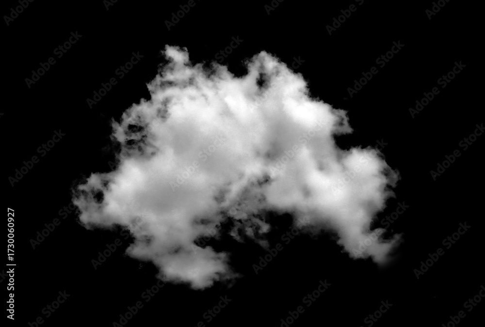 White fluffy cloud isolated on black background, abstract sky element symbolizing weather, freedom, nature, and imagination, perfect for design, climate concepts, or dreamy creative backgrounds.