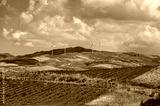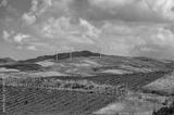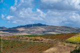 View on hills with vineyards and olive groves from Palermo-Trapani highway, Sicily, vacation destination in Italy