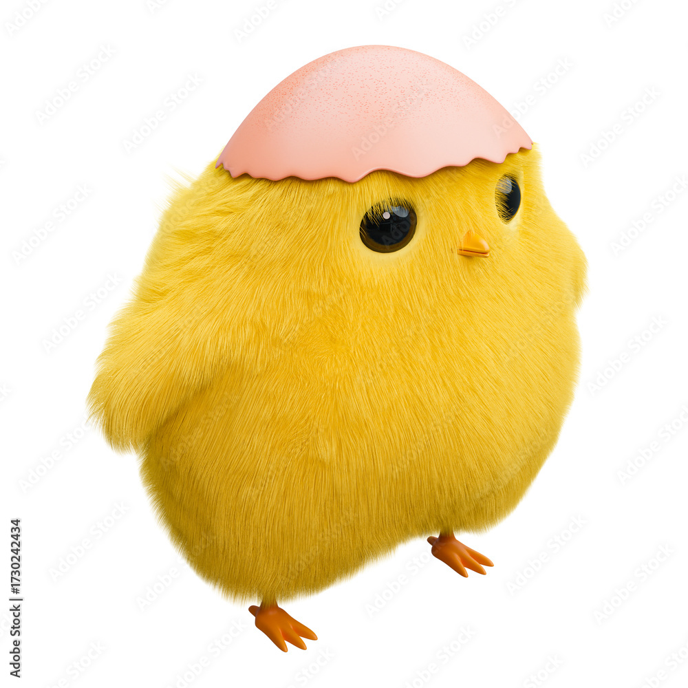 Fluffy Yellow Chick with Pink Eggshell Hat on Transparent Background