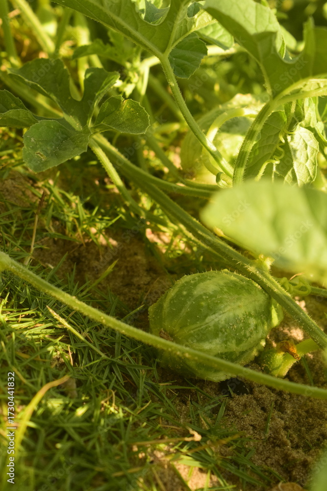 Pé de maxixe com fruto verde pronto para colheita, planta com legume orgânico bonito