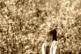 Asian girl with Wild Himalayan Cherry flower in Phu Lom Lo, Chiang Mai, Thailand.