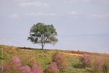 Wild Himalayan Cherry with blue sky and cloud background. Thai sakura blooming during winter in Thailand