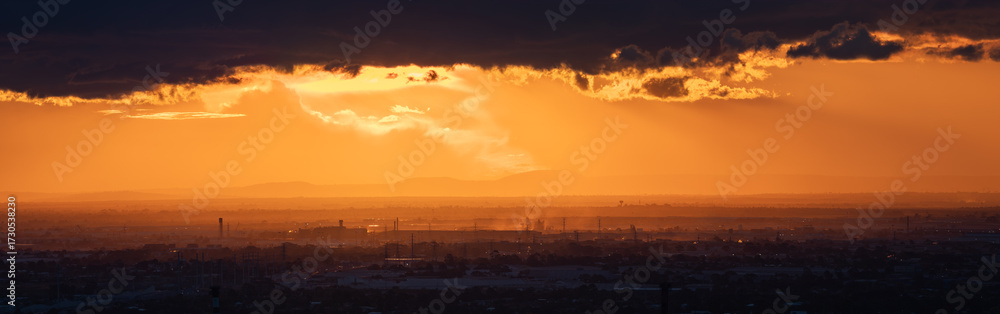 Apocalyptic Orange Sky over Industrial Area at Sunset