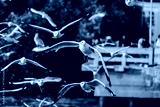 Seagull flying on beautiful blue sea