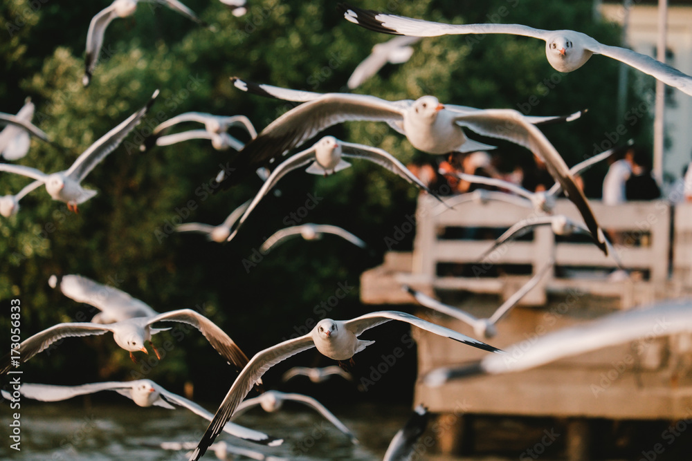 Seagull flying on beautiful blue sea