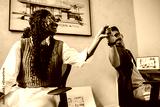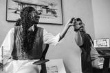 Colleagues celebrating teamwork success with a high five in creative office setting