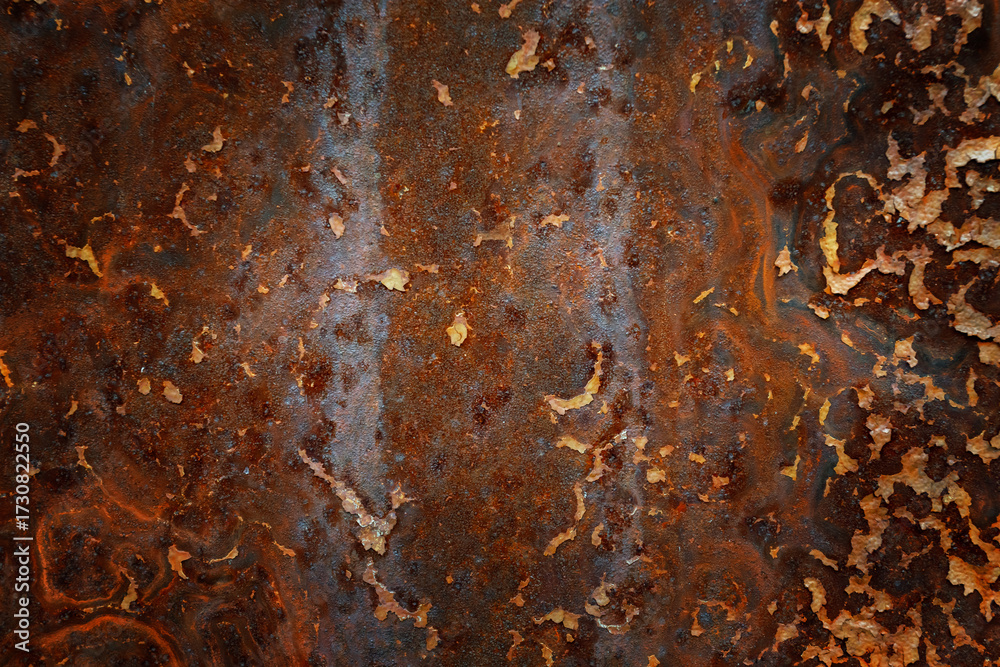 Detailed Abstract Background of an Old Corroded Metal Surface with Rich Brown and Orange Rust Texture. for Vintage, Industrial, or Grunge Design Projects and Backdrops.