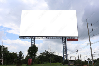 Blank Advertising Billboard in Rural Setting with Overcast Sky