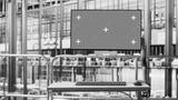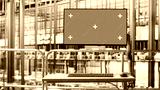 Green screen monitor displaying analytics dashboard for Industry 4.0 smart factory equipment. Industrial plant mockup display visualizing robotic arms performance and metrics from sensor data