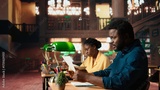 African american college student struggling to study theoretical notes from the last class lesson, learning to prepare for the exam. Anxious frustrated teenager at the campus library. Camera A.