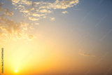 Sunrise over a tranquil landscape with soft clouds and vibrant colors in the morning sky