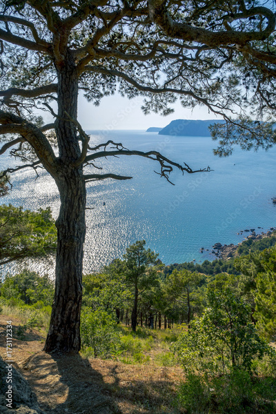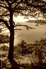 Black Sea Bay and Pine Tree on Crimean Mountains