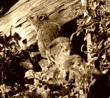 Rock hyrax (Procavia capensis) getting rest in front of abandoned mine in Mount Elgon National Park, Kenya