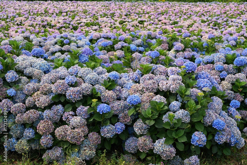 View of an hydrangea nursery sloping towards the Atlantic Ocean in Paimpol, Britanny