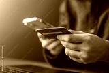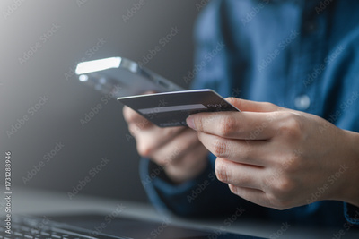 Close-up of hands holding credit card and smartphone, representing wallet top-up, adding funds, secure online payment, and digital finance solutions through mobile banking and fintech services.