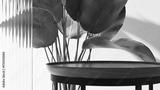 Round brown wooden table podium, green tropical plant, reeded fluted glass partition in sunlight on white wall for modern, elegant fashion, beauty, cosmetic, skincare, body care, product background 3D