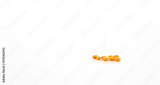 Prescription medicine yellow sugar coated tablet pills on white background representing pharmaceutical product healthcare innovation drug discovery and new clinical research in medical science.