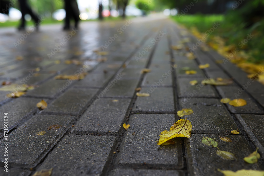 Lively closeup of falling autumn leaves with vibrant backlight from the setting sun