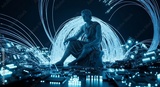 Ancient wisdom meets futuristic technology, a powerful fusion of classical art and digital innovation illuminating the path forward.