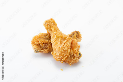Fried chicken thigh isolated on white background.