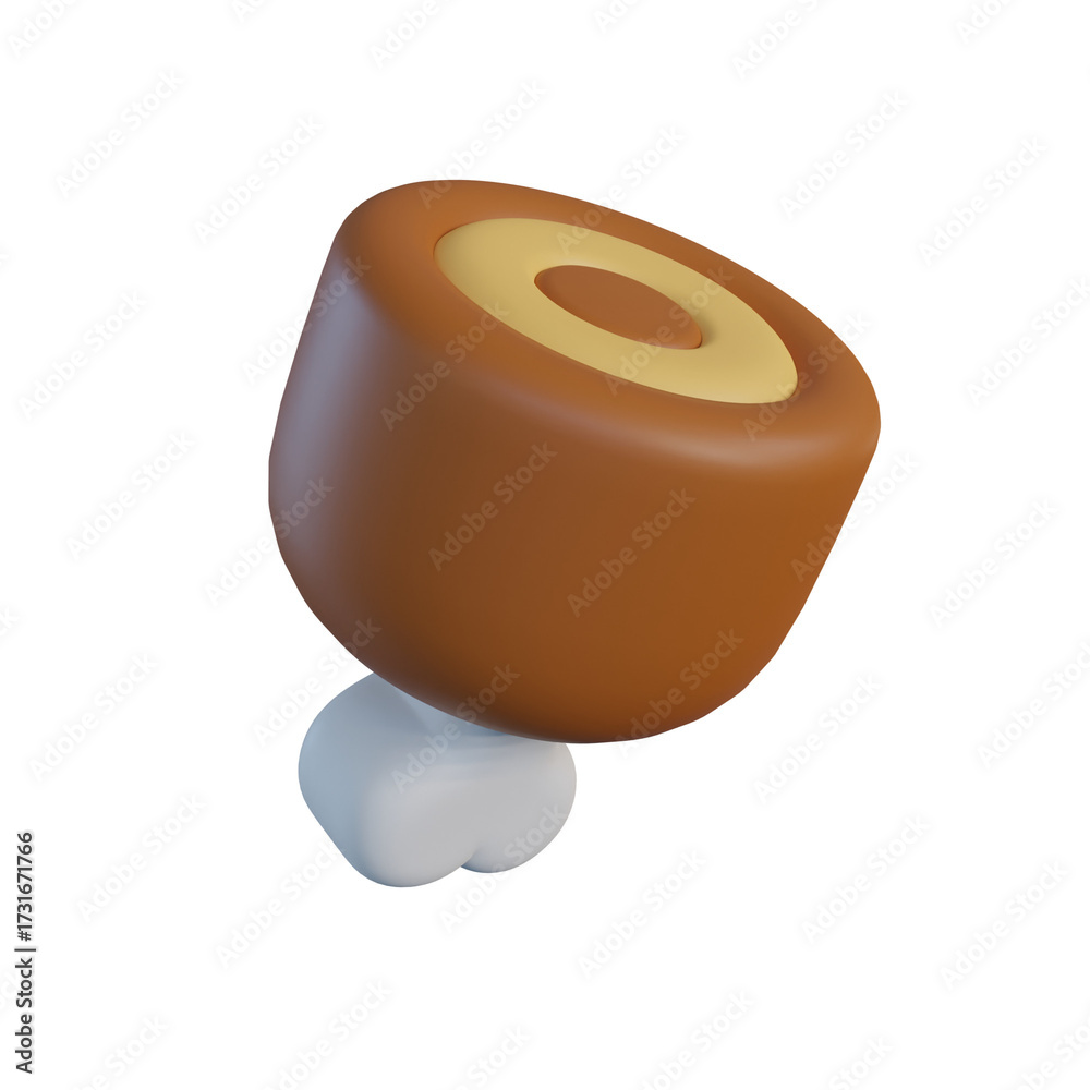 Stylized Turkey Drumstick Illustration Isolated on Transparent Background with 3D Render Style