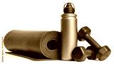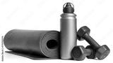 Fitness equipment yoga mat dumbbells and water bottle for workout and healthy lifestyle concept isolated